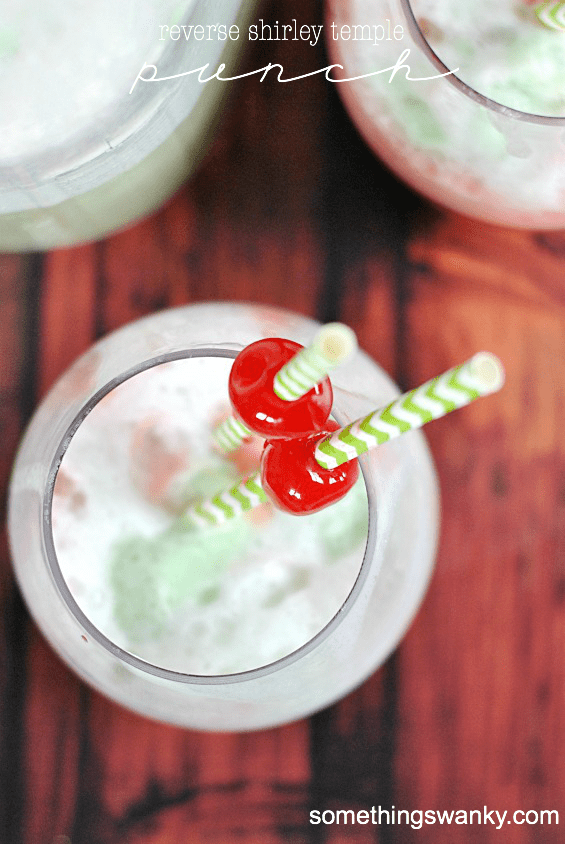 Reverse Shirley Temple Punch Recipe posted by Staff Writer Pin Share Tweet Email Jump to RecipeThis yummy punch is full of fun colors, sweet cherries, and the nostalgic flavors of a classic Shirley Temple! It’s perfect for a crowd but can also be easily made for one or two. My husband and I love to make sherbet floats on date nights. His favorite sherbet flavor is rainbow, mine is usually raspberry. And usually we’re pretty boring and just plop our sherbet into plain ol’ lemon-lime soda. But every once in a while we’ll get a little crazy and try a different flavored soda. I’m obsessed with Cherry 7-up, and I just knew it was going to be DELICIOUS paired with lime sherbet– just like a Shirley Temple! …but backwards ๐ I added a few maraschino cherries and their syrup for a little extra cherry flavor (and pop of fun color). This punch turned out absolutely delicious, perfectly sweet, and totally refreshing! Continue to Content Reverse Shirley Temple Punch Yield: 10-14 Print Ingredients 2 liter Cherry 7-Up (or Diet Cherry 7-Up) 1 pint lime sherbet optional: maraschino cherries in syrup for garnish Instructions Gently pour Cherry 7-Up into punch bowl. Scoop lime sherbet into the bowl. Let rest for 5-10 minutes until foamy. Serve in cups with cherries and cherry syrup in the bottom.