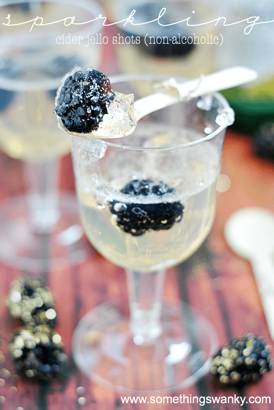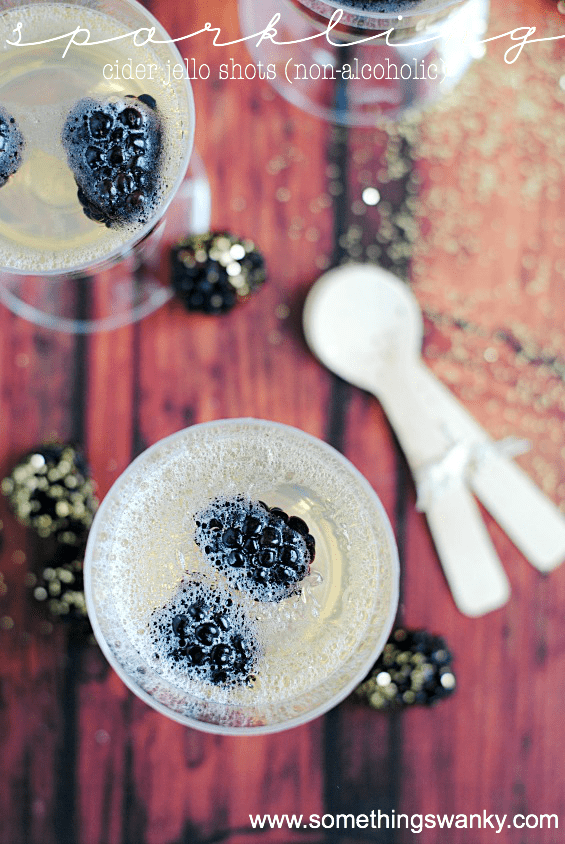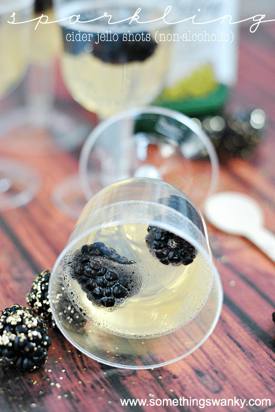 Sparkling Cider Jello Shots (non-alcoholic) Recipe posted by Staff Writer Pin Share Tweet Email Jump to Recipe These Sparkling Cider Jello Shots are as stunning and beautiful as they are delicious and fun! A great alternative to alcoholic champagne jello shots that are so popular on New Years, these sparkling treats are for the whole family! I’ve been so excited to share this recipe with you! But first, can we just take a moment to say ohmygosh I can’t believe Christmas has already come and gone?!? I mean. Wow. How has the entire year already flown by?? We had a really great Christmas with my family in North Carolina. It took us all day to work our way through the pile of gifts, the food was incredible, and the day was filled with lots of laughter and love. We relished in every single moment watching Emma as she (for the first year) started to really understand the concept of Santa, gift giving, and (obviously) gift getting. We went overboard on her gifts this year, no question about it, but it has been so much fun watching her gleefully run around with new toys. I know, I know– I’m just talking about the toys and presents. I know there’s more to Christmas, and I should be focusing on that. But I just can’t wipe the grin off my face when I see her sitting at her new vanity curling her hair and applying pretend lipstick. Or when she runs around with her new camera shouting “SAY CHEEEEEEEEEEEEESE!” Or when I hear her speaking in a high squeaky voice as she pretends the Cinderella lego-person is having a conversation with the Ariel lego-person. It’s just so sweet my heart feels like it’s going to explode. But all good things must come to an end, I suppose. And now it’s time to transition into the New Year. Which means it’s almost time to start cleaning out her room of old and ragged toys, taking down the Christmas decorations, and making salad my new favorite food (boo)! Fortunately, the cosmic universe (well… the calendar year, actually) gives us a buffer week in between the most gluttonous day of the year and the least. And we get to use this week to finish up the holiday food leftovers and plan for one last awesome celebration: New Years Eve! We don’t drink, but I’ve always loved the look of champagne jello shots. They just look so pretty and sparkly, and I’ve been meaning to get around to making a non-alcoholic sparkling cider version forever! These are so fun and just as beautiful as the champagne jello shots, but these can be enjoyed by the entire family! You can use any flavor of sparkling cider (or even a combination of half juice and half carbonated water) and add berries or cherries for a fancy look! You could even add gummies for a less-fancy and more kid-friendly feel!! I used White Grape Sparkling Juice and blackberries for a more “adult” and sophisticated look and taste, but there are so many variations you could create. And, of course, think outside the glass! I was going for fancy-looking, so I poured them into these stemmed glasses. But you could pour the jello into small jars or even cut them into cubes! Sparkling Cider Jello Shot Tips You can use any flavor of sparkling cider or juice for this recipe. I like to use a white grape sparkling cider for a more sophisticated look and taste, but you could also use apple, cranberry, or even orange juice! If you’re using whole berries or cherries as a garnish, be sure to wash them and remove the stems before adding them to the jello shots. These can be poured into any type of container you like for serving, from small jars to stemmed glasses. If you’re using stemmed glasses, be sure to pour the liquid slowly so as not to lose too much carbonation. These can also be made into cubes by pouring them into a square or rectangular cake pan and then freezing. Once frozen, you can pop them out of the pan and store in a freezer-safe container. Then, just before serving, let them thaw slightly so that they’re easy to eat! If you’re looking for a less-fancy and more kid-friendly version, try adding gummy bears or other types of gummy candy to the jello shots! Sparkling Cider Jello Shot FAQ Do I have to use gelatin? You can definitely make these without the gelatin, but they will not be as firm. For a less-firm jello shot, you could try using agar-agar or vegan gelatin. Can I use any type of sparkling juice or cider? Yes, you can use any type of sparkling juice or cider that you like. I recommend choosing a sparkling juice or cider with a fruity flavor for the best results. Can I add alcohol to these jello shots? Yes, you can add alcohol to these jello shots if you would like. Just be sure to adjust the amount of gelatin accordingly. For example, if you are using 1 cup of alcohol, use only 1 envelope of unflavored gelatin. How long will these jello shots keep? These jello shots will keep in the fridge for about 2-3 days. You can also store them in the freezer for a few weeks. Just be sure to thaw them slightly before serving. So there you have it! A fun and festive way to end the year and celebrate New Year’s Eve! These Sparkling Cider Jello Shots are as stunning and beautiful as they are delicious and fun! A great alternative to alcoholic champagne jello shots that are so popular on New Years, these sparkling treats are for the whole family! Continue to Content Sparkling Cider Jello Shots (non-alcoholic) Print Ingredients 1/2 cup boiling water 2 envelopes unflavored gelatin 2 1/2 cups sparkling juice or cider (chilled) optional: berries, cherries, or gummies Instructions Sprinkle the 2 envelopes of unflavored gelatin over the boiling water and let soften for a few minutes. Whisk to dissolve completely and to get rid of clumps. Pour the sparkling juice or cider gently into a mixing bowl or large measuring cup with a spout (try to pour onto the inside of the bowl to minimize carbonation loss). Pour the gelatin mixture into the sparkling juice and gently stir to combine. Pour the liquid into stemmed