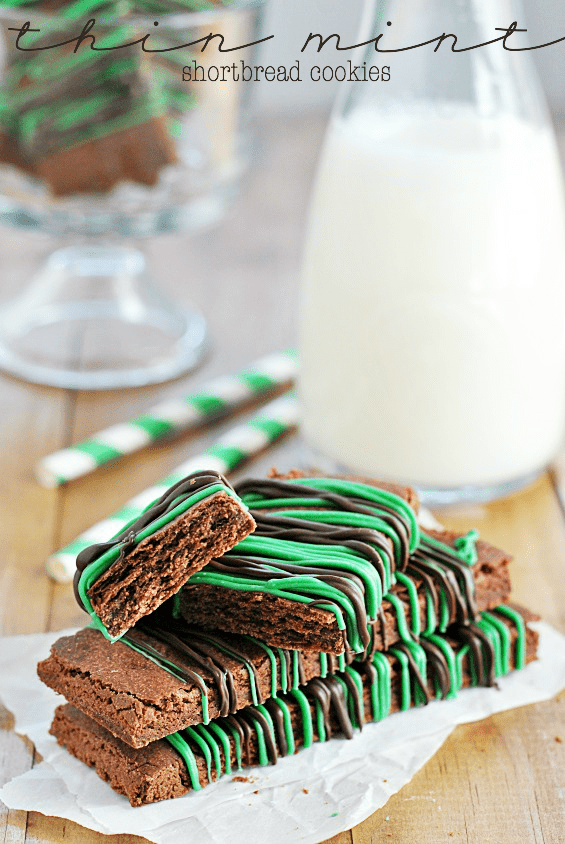 Thin Mint Shortbread Recipe posted by Staff Writer Pin Share Tweet Email Jump to RecipeThis is post #4 in a 3 week series of Girl Scout Cookie-inspired recipes! This week: Thin Mint Recipes! It’s hard to believe that Thin Mint week has come and gone so quickly! But here we are, at the very last Thin Mint recipe. This is the only recipe I’ve made this week that doesn’t use the actual cookie in the making. Instead, I wanted to loosely replicate the girl scout cookie from scratch. It’s not an exact copycat, but it is delicious and a lot easier to make than dipping chocolate cookies! Chocolate shortbread always tastes sort of like brownies to me, which I love. These have a little bit of mint flavoring (which you can choose to increase a bit from what this recipe calls for if you’re a bigger mint fan than I am) and a hefty chocolate drizzle– so the Thin Mint flavors are all there, just arranged a little differently. I used both chocolate and green melting candy as a drizzle, just to give you a minty visual. But feel free to leave the green out and just drizzle chocolate! You can also sprinkle some fresh mint on top for a fresh take (or one of our recommended mint substitutes). Continue to Content Thin Mint Shortbread Yield: 12 Print Ingredients 1 cups all-purpose flour 1/3 cup cocoa powder 1/4 teaspoon salt 1/4 cup + 1 tablespoons granulated sugar 1/2 cup butter, softened 1/2 teaspoon vanilla extract 1/2 teaspoon mint extract* 1-3 tablespoons water 1/4 cup melting chocolate for dirizzling. Instructions In a small bowl, mix together the flour, cocoa powder, and salt. Set aside. Cream together the sugar and butter. Add the dry ingredients, the vanilla extract, and the mint extract. Mix well. Mixture may be crumbly at first, but should come together after mixing for a minute or two. If it doesn't, slowly add water 1 teaspoon at a time until dough is just moist enough that it sticks together when you press it with your hand. Roll dough onto a silicon baking mat or parchment paper to a 1/4 inch thickness. It helps to try and keep the dough in a rectangular shape. Place dough on a cookie sheet (with the silicon baking mat or parchment paper) and cover with plastic wrap. Chill for 30 minutes. Meanwhile, preheat oven to 350ºF. After chill time, bake dough for 15-20 minutes, until set in the middle. Immediately cut bars using a pizza cutter (but do not try to separate the bars while warm). Once cooled completely, drizzle the bars with chocolate and let chocolate set before serving. Notes *I used 1/2 tsp mint extract, because I'm always paranoid about overusing mint flavoring (toothpaste-- yuck!). But even I think you could probably up this amount to 3/4 tsp, maybe even 1 tsp if you like mint a lot. Chocolate shortbread recipe was ever so slightly modified from: Two Peas and Their Pod