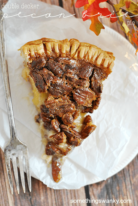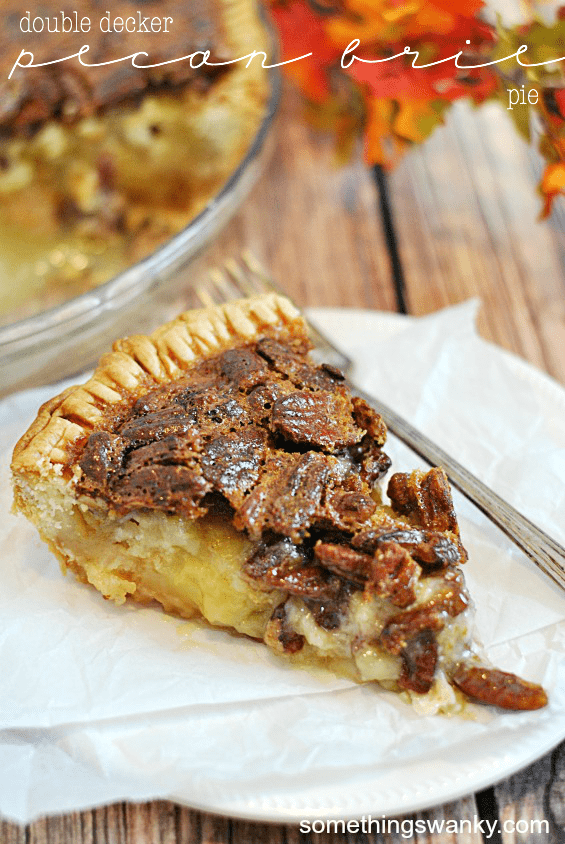 Double Decker Pecan Brie Pie Recipe posted by Staff Writer Pin Share Tweet Email Jump to Recipe I have a crazy obsession with brie cheese. Although I only just tried it for the first time this year, I have certainly been making up for the 27 years of my life that have not been filled with brie cheese. I know there are lots of ways to eat brie. There are fancy ways, and not-so-fancy ways. You can eat it cold or warm and melt-y. It can be savory or it can be sweet. I don’t think it will be a surprise to anyone if I go ahead and declare that I like my brie to be not-so-fancy, warm and melted, and very sweet. That seems about right, yes? Earlier this year, I made a Baked Brie Apple Pie, and I’ve been toying around with the idea of a Pecan Brie Pie ever since then. But, of course, I wanted to wait until we were a little closer to Thanksgiving. And now, here we are, tumbling headfirst into the holiday season!! I can’t believe it’s come on so fast, but I am completely digging it. I look forward to Fall/Thanksgiving/Christmas food all year long, and I won’t be the one to complain that it creeps up on us earlier and earlier every year. Heck, I’ll be all smiles if the time ever comes that I’m sipping on cider and eating peppermint bark in July! I mean, not that I think the holidays should start in July. I’m just saying… good food is good food. And holiday food is the best kind of food. So… you know… I’ll take it whenever I can get it! But let’s get back on topic… this pie. One pie crust, a layer of brie cheese, another pie crust, and a layer of pecan pie filling. That’s what’s in this whopper of a pie! Two full layers of pie means double the delicious!! Trust me, you want to add this to your holiday line up! Plus, it’s SO simple. The brie layer makes it a little extra fancy, but there is seriously no extra work (especially if you’re a Pillsbury pie crust fan, like I am)! Be prepared to look ultra-impressive this holiday season ๐ . Continue to Content Double Decker Pecan Brie Pie Yield: 8 Print Ingredients 2 unbaked pie crust 12 ounces brie cheese, sliced* 2/3 cup sugar 1/3 cup butter 1 cup corn syrup 1/2 teaspoon salt 3 large eggs 1 cup pecan halves Instructions Preheat oven to 375ºF. Line a deep 9" pie dish with one unbaked pie crust. Evenly layer the brie cheese slices on top. Cover the brie cheese with the second pie crust. Gently press the crust down on top of the cheese and against the walls of the dish, sealing it with the first pie crust. Trim or fold the edges of the crust as desired. Set aside. In a medium bowl, bet the sugar, butter, corn syrup, salt, and eggs with a whisk until well mixed. Stir in pecan halves. Pour into the prepared pie dish. Bake for 45 minutes, until center is almost set. Let cool for at least 30 minutes before cooling. Notes *the amount of brie cheese can be altered a bit without drastically affecting the result of the pie.