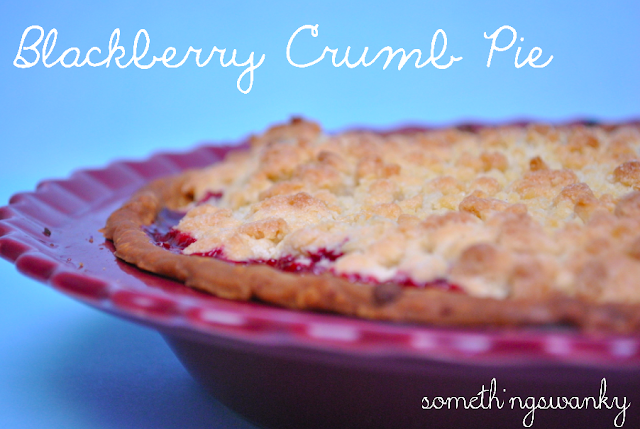 Blackberry Crumb Pie posted by Staff Writer Pin Share Tweet Email I love the gorgeous purple of this Blackberry Crumb Pie! I’m not in love with coloring my food red and blue for July 4th. Not that it bothers me to see anyone else do it. It’s just that once I get started on a dessert, and it’s time to pull out the food coloring, I just think, “why bother?” And back in the cupboard it goes… But I can get behind berries for the 4th! I love all the gorgeous red and blue berries that are out right now– does anything say summer better than a berry dessert in July?? Thanks to Dorothy for this awesome recipe! The pie crust on the bottom and the massive amount of crumble on the top make this one ah-mazing pie, and I wouldn’t expect anything less from the queen of crusts 🙂 Blackberry Crumb Pie Recipe Source: Crazy For Crust 6027983 Ingredients 1 Pie Crust, refrigerated or from scratch For the Filling: 3 cups fresh or frozen blackberries ¼ – ½ cup sugar ¾ teaspoons cinnamon For the Crumble Topping 2/3 cup sugar 1 ½ cups flour 12 tablespoons butter Instructions For the Filling: Toss the berries with the sugar and the cinnamon. For the Crumble Topping: Whisk together the flour and the sugar. Cut in the butter with a pastry cutter or fork until mixture is crumbly. Assemble: Press the pie crust into a pie dish. Pour in the berry filling. Cover with the crumble topping. Bake at 400° for 35-40 minutes.