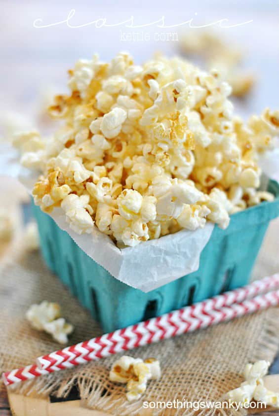 Classic Kettle Corn Recipe posted by Staff Writer Pin Share Tweet Email Jump to Recipe The past 6 months have given me a lot of opportunities to try different kinds of popcorn. Because I literally wrote the book on popcorn this summer, and I was up to my eyeballs in kernels! We’re still about a year out from publication, but all sorts of fun stuff are happening behind the scenes. Now that the grind of writing it the first time around is done, it’s time for the fun stuff. Edits are in process, photographs are being taken, the cover design is happening. It’s all very exciting and completely surreal. In fact, the whole experience so far has really made me stop and think about the experiences behind other cookbooks. I find myself flipping through pages and instead of thinking about the recipes, I’m wondering, “I wonder if the author picked out this color scheme?” “Hm. This one has an introduction that tells a personal story, but this one has an introduction that discusses baking techniques… what’s the best way to write an introduction?” “I wonder if she ever emailed really stupid questions to her editor?” “How did she feel about this photograph?” It’s totally changed the way I look through a cookbook and given me a whole new perspective on the finished product. Because that’s how I see a cookbook now– as a series of projects leading up to aย finished product. Right now I’m seeing all the pieces of my own book start to take shape and come together, but it’s still so hard to imagine a completely finished book with my name on it. In the meantime (while I’m holding my breath and crossing my fingers that the fine folks at my publishing house don’t change their minds and run in the other direction), how about some popcorn?? This recipe is my very favorite from the book. Classic Kettle Corn has always been my very favorite way to eat popcorn, and 75 recipes later– nothing’s changed! I still love the crunchy, crispy, sweet, buttery flavor that Kettle Corn has to offer. It’s so, so easy to make, and about a MILLION times better than the microwave variety you’ll find at the grocery store. You’re going to love this recipe!! Continue to Content Classic Kettle Corn Print Ingredients 1/4 cup vegetable, canola, or coconut oil 1/2 cup sugar 1/2 cup popcorn kernels 3 Tbsp. butter, melted salt for sprinkling Instructions Prepare a space for the popcorn to cool on a silicon or parchment liner. You want this to be ready to go, because the popcorn needs to be removed from the pot immediately after popping to prevent burning! Pour the oil into a large, deep pot (with a lid). Heat the oil over medium-high heat on the stove. Place 1 popcorn kernel in the pot with the oil.When the kernel pops, the oil is at the right temperature. Mix in the sugar to the oil. Add the popcorn kernels and cover. Shake the pot (requires a little arm muscle here) back and forth over the heat. Kernels should start popping within two or three minutes. Continue to shake while all of the kernels pop-- it may take up to 10 minutes. Once the popping has stopped, remove from heat immediately, and spread (immediately!) on parchment paper or a silicon liner to let cool slightly and allow the sugar to harden on the kernels a little bit. Drizzle melted butter over top and sprinkle with salt (to taste) while cooling. Eat while warm! Notes This popcorn stores really well and will taste fresh for well over a week if you keep it in an airtight container. However, I do not recommend pouring the melted butter on the popcorn if you are not eating it immediately.