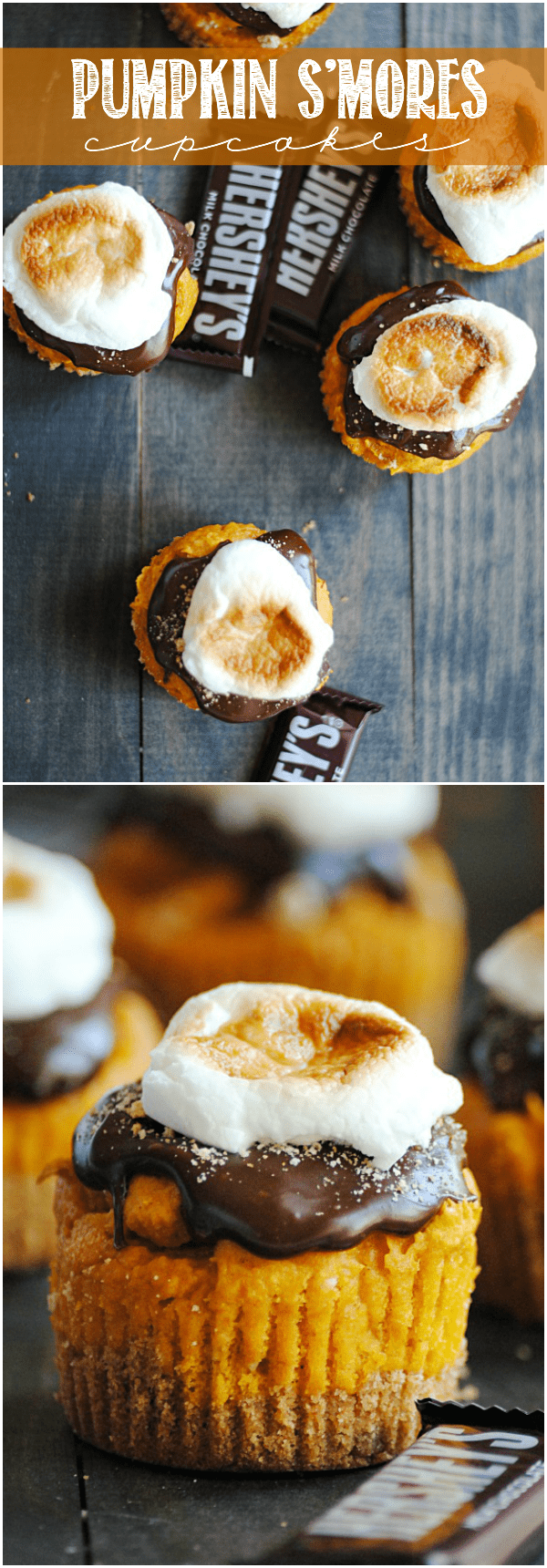 S’mores Pumpkin Cupcakes Recipe posted by Staff Writer Pin Share Tweet Email Jump to Recipe S’mores Pumpkin Cupcakes Recipe S’mores Pumpkin Cupcakes are made with graham cracker crusts, an easy 3-ingredient pumpkin spice cupcake recipe, marshmallow cream filling, chocolate ganache, and a toasted marshmallow up on top. This S’mores Pumpkin Cupcake Recipe is the perfect treat to bridge the gap between the end of summer fun and the start of Fall baking. Which totally means no more waiting until October or November for pumpkin goodies! I love really, really simple recipes that still bring the wow factor. And that’s exactly what these S’mores Pumpkin Cupcakes do! They are “extra” from top to bottom. But the best part is that they are extra easy to make! Ingredients Great ingredients and the right tools make all the difference in any recipe. Here are the ones I recommend for this Pumpkin S’mores Cupcake Recipe: ▢ graham crackers ▢ butter ▢ yellow cake mix ▢ pumpkin puree (not pie filling) ▢ marshmallow cream ▢ milk chocolate chips ▢ heavy cream ▢ large or jumbo marshmallows How to Make Moist Pumpkin Cupcakes with a Cake Mix I am all about mixing pumpkin puree with cake mix. It’s such a simple combination that you can do so many things with! Measurements for Mixing Cake Mix with Pumpkin ♦ If you want to make a pumpkin cookies recipe with cake mix:1 can (15 oz) pumpkin puree + 1 (15 oz) cake mix + chocolate chips ♦ If you want to make a pumpkin cake recipe with cake mix: 1 can (15 oz) pumpkin puree + 1 (15 oz) cake mix + 3/4 cup milk + 1 teaspoon ground cinnamon* ♦ If you want to make a pumpkin cupcake recipe with cake mix:1 can (15 oz) pumpkin puree + 1 (15 oz) cake mix + 1/2 cup milk + 1 teaspoon ground cinnamon* * or pumpkin pie spice RELATED: Try our Krusteaz Pumpkin Bread 🎃 🍞 How to Fill S’mores Pumpkin Cupcakes What goes inside of these S’mores Pumpkin Cupcakes? A gigantic dollop of marshmallow cream, of course! Here are a few step-by-step instructions to make this part of the recipe a little easier to follow: ➊ Core the cupcake. This simply means that you need to hollow out the middle of the cupcake just a bit. I used a melon baller to do this (which I linked to above), but apparently cupcake corers are a thing! If you want to go that route, I’ve also linked to a good cupcake corer. Pro tip: be sure the cupcakes have cooled completely to room temperature first! ➋ Fill the cupcake with marshmallow creme. This can simply be done with a spoon; it’s a little messy, but it’s fine. You could use an “official” cupcake injector like this one if you want. I found that somewhere in between those two methods worked best for me– I spooned my marshmallow cream into a piping bag (you can use a gallon size zipper bag if you don’t keep piping bags on hand), and then filled the cupcakes that way. ➌ Add the toppings. Replace the “core” of the cupcake. Don’t worry if it doesn’t fit like a perfect puzzle piece– just jam it on there. Once you cover it with chocolate ganache and a toasted marshmallow, any mess underneath will be completely hidden away. Calling all cupcake fans! Bourbon Cupcakes with Bacon, Maple & Vanilla Chocolate Ganache or Chocolate Frosting Whether you’re just not into ganache or you simply prefer the more traditional frosting topping, I thought I’d also make sure you have my favorite recipe for chocolate frosting. You could replace the ganache with this recipe and still add the toasted marshmallow on top! Ingredients 12 ounce package semisweet chocolate chips 1/2 cup salted butter 8 ounces sour cream 4 1/2 cups powdered sugar 1 teaspoon vanilla extract. Directions Place the butter in a large microwave-safe bowl. Microwave for 60 seconds, or until butter is melted completely. Add the chocolate chips to the bowl and stir until chocolate chips are very melted. When you feel like the chocolate chips won’t melt any more just from being in the warm butter, place the bowl back in the microwave and heat for 30 seconds. Remove and stir until chocolate chips are completely melted and smooth (nuke an additional 30 seconds if necessary). Use an electric mixer to mix in the sour cream. Add the powdered sugar a cup at a time and the vanilla extract, mixing well in between each addition. Use immediately or store covered in the refrigerator for up to 2 weeks. Warm in the microwave in 30 second increments for spreading after refrigerating. Traditional pumpkin spice cupcakes with cream cheese frosting are pretty good, of course. But these S’mores Pumpkin Cupcakes are absolutely EPIC! I hope you enjoy them as much as I do ☺. Continue to Content S'mores Pumpkin Cupcakes Yield: 12-15 cupcakes Prep Time: 25 minutes Cook Time: 20 minutes Additional Time: 45 minutes Total Time: 1 hour 30 minutes This S'mores Pumpkin Cupcakes recipe is made with a graham cracker crust, an easy 3-ingredient pumpkin cupcake, a marshmallow cream filling, and topped with chocolate ganache and a toasted marshmallow. Print Ingredients For the Graham Cracker Crust: 18 graham cracker rectangle sheets 1/2 cup butter, melted For the Cupcake: 1 box yellow cake mix (dry mix, not including the other ingredients) 15 ounce can pumpkin puree (NOT pumpkin pie filling) 1/2 cup milk For the Filling: approximately 3/4 cup marshmallow cream For the Toppings: 1 cup milk chocolate chips 1.5 ounces of heavy cream approximately 15 large marshmallows optional: more graham cracker crumbs for topping Instructions Preheat oven to 350ºF. Line a muffin tin with cupcake liners.For the Crusts:In a food processor, crush the graham crackers. Add the butter and continue to blend until mixed well.Press heaping tablespoons of the graham cracker crust mixture into each of the lined cups of the prepared muffin tin.For the Cupcakes:In a large mixing bowl, mix together the pumpkin, cake mix, and the milk until the batter forms.Scoop 1/4 cup of batter into each cup over the graham