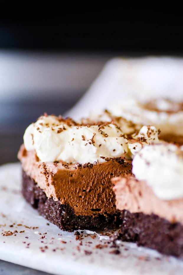 French Silk Pie Bars Recipe posted by Staff Writer Pin Share Tweet Email These French Silk Pie bars have a delicious chocolate graham cracker crust with a creamy, yet light-as-air, chocolate mousse filling. This pie is a fantastic recipe to have on hand for just about any occasion, and it’s so much easier to make than you might think. Top it with my favorite homemade whipped cream, or make it extra rich with a little chocolate ganache drizzled on top! Dixie Crystals sponsors this post. All thoughts and opinions are my own. BE SURE TO CHECK OUT ALL OF MY RECIPES ON THE DIXIE CRYSTALS WEBSITE! What’s in these French Silk Pie Bars? chocolate graham crackers Dixie Crystals Extra Fine Granulated Sugar butter unsweetened chocolate cream cheese Dixie Crystals Confectioners Powdered Sugar whipped cream more whipped cream and chocolate shavings for toppings More Swanky Pie Bars Oreo Pecan Pie Bars Get the Recipe Berry Pie Bars Get Recipe Oatmeal Cream Pie Bars Get Recipe Salted Caramel Apple Pie Bars Get Recipe Recipe Overview: You’ll love how simple this recipe is! It’s all done in three very easy stages: Make the crust. Crush up the graham crackers, mix the crumbs with butter and sugar, press in the pan, and bake! Make the filling. In a nutshell: melt the chocolate and mix everything up in a stand mixer. It really is that easy. Chill and top! Let the bars chill for a while, and then add the whipped cream and chocolate shavings to the top. French Silk Pie Time Savers If you're in a pinch for time, try substituting one of these shortcuts for their coordinating component in the pie. Simple Pudding Mousseย This simple pudding mousse uses instant pudding and Cool Whip to make a fabulous pie filling in a hurry. Get the Recipe Graham Cracker Crust If you don't have chocolate graham crackers on hand, don't worry. This graham cracker crust would taste amazing with a French Silk Pie filling on top! Get the Recipe The Best Homemade Whipped Cream Recipe When I'm in a rush, I love to use Cool Whip from the store. But when I don't have any on hand, it's WAY easier just to make my own than it would be to pack all the kids in the car and take them grocery shopping with me. This homemade whipped cream comes together in a flash, and it won't deflate on you no matter how long you store it in the fridge. Get Recipe Ready to Make this Recipe? CLICK OVER TO DIXIE CRYSTALS TO GET THIS RECIPE Pumpkin Tres Leches Continue Reading Gingerbread Waffles Recipe Continue Reading Lofthouse Sugar Cookies Copycat Recipe Continue Reading Milk Chocolate Cupcake Recipe Continue Reading Cinnamon Sugar Baked Pumpkin Donuts Continue Reading Pumpkin French Toast Casserole Recipe Continue Reading Birthday Brookie Cookies Get Recipe Vanilla Crazy Cake Get Recipe Caramel Oreo Pie Get Recipe Smookies Get Recipe Black Forest Torte Get Recipe