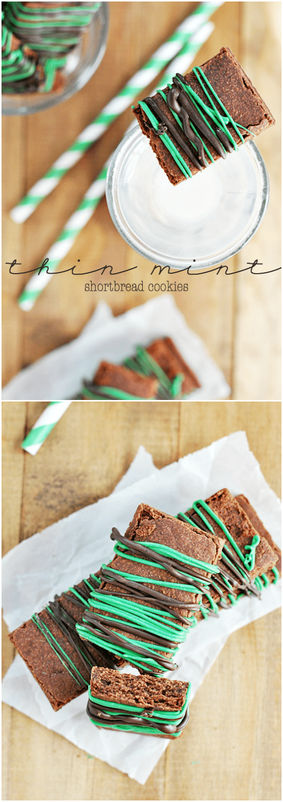 Thin Mint Shortbread Recipe posted by Staff Writer Pin Share Tweet Email Jump to RecipeThis is post #4 in a 3 week series of Girl Scout Cookie-inspired recipes! This week: Thin Mint Recipes! It’s hard to believe that Thin Mint week has come and gone so quickly! But here we are, at the very last Thin Mint recipe. This is the only recipe I’ve made this week that doesn’t use the actual cookie in the making. Instead, I wanted to loosely replicate the girl scout cookie from scratch. It’s not an exact copycat, but it is delicious and a lot easier to make than dipping chocolate cookies! Chocolate shortbread always tastes sort of like brownies to me, which I love. These have a little bit of mint flavoring (which you can choose to increase a bit from what this recipe calls for if you’re a bigger mint fan than I am) and a hefty chocolate drizzle– so the Thin Mint flavors are all there, just arranged a little differently. I used both chocolate and green melting candy as a drizzle, just to give you a minty visual. But feel free to leave the green out and just drizzle chocolate! You can also sprinkle some fresh mint on top for a fresh take (or one of our recommended mint substitutes). Continue to Content Thin Mint Shortbread Yield: 12 Print Ingredients 1 cups all-purpose flour 1/3 cup cocoa powder 1/4 teaspoon salt 1/4 cup + 1 tablespoons granulated sugar 1/2 cup butter, softened 1/2 teaspoon vanilla extract 1/2 teaspoon mint extract* 1-3 tablespoons water 1/4 cup melting chocolate for dirizzling. Instructions In a small bowl, mix together the flour, cocoa powder, and salt. Set aside. Cream together the sugar and butter. Add the dry ingredients, the vanilla extract, and the mint extract. Mix well. Mixture may be crumbly at first, but should come together after mixing for a minute or two. If it doesn't, slowly add water 1 teaspoon at a time until dough is just moist enough that it sticks together when you press it with your hand. Roll dough onto a silicon baking mat or parchment paper to a 1/4 inch thickness. It helps to try and keep the dough in a rectangular shape. Place dough on a cookie sheet (with the silicon baking mat or parchment paper) and cover with plastic wrap. Chill for 30 minutes. Meanwhile, preheat oven to 350ºF. After chill time, bake dough for 15-20 minutes, until set in the middle. Immediately cut bars using a pizza cutter (but do not try to separate the bars while warm). Once cooled completely, drizzle the bars with chocolate and let chocolate set before serving. Notes *I used 1/2 tsp mint extract, because I'm always paranoid about overusing mint flavoring (toothpaste-- yuck!). But even I think you could probably up this amount to 3/4 tsp, maybe even 1 tsp if you like mint a lot. Chocolate shortbread recipe was ever so slightly modified from: Two Peas and Their Pod