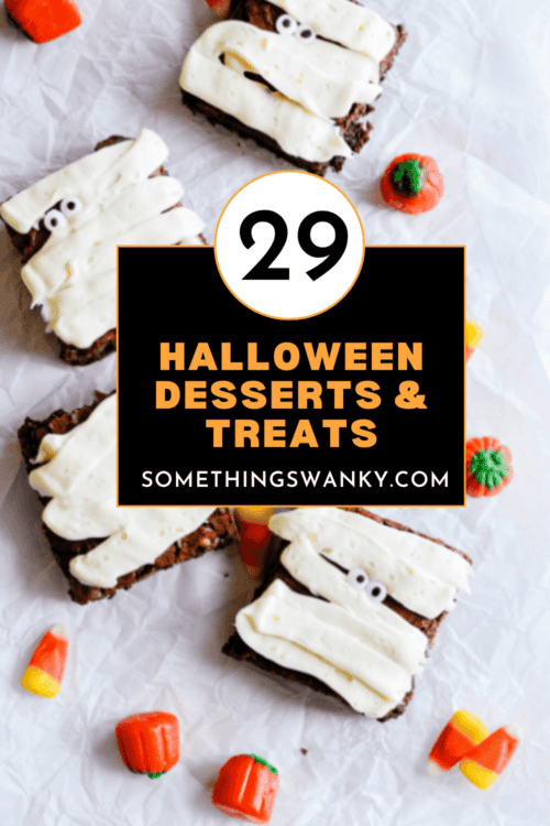 Swanky’s BEST Halloween Desserts posted by Staff Writer Pin Share Tweet Email You’ll love every one of these Swanky Halloween Desserts including some of our very favorites. ‘Tis the spoooooky time of year, and we can’t resist all the scary, funny, fabulous options for Halloween treats. There is something for all of your ghosts and goblins on this list. Dazzle them with Spider Web Donuts, Spooky Spiderweb S’Mores Pops, Frankenstein Cookie Bars (so cute), Hairy Monster Cookies, and those Mummy Brownies in the photo below. You can’t go wrong with Polka Dot Pumpkin Cake, Mummy Cinnamon Roll Bread, Candy Bar Cheesecake, Pumpkin Patch Donuts. For snacks on the run (or for lunchboxes), we’ve got Homemade Butterfingers, Double Dark Chocolate Oreo Pudding Cookies, and Pumpkin Pie Buddy Buddies. So many cookies. Milky Way Stuffed Chocolate Chip Cookies, Candy Corn M&M Macadamia Cookies. It just goes on and on. And why shouldn’t it? For Halloween parties (as if none of the above are applicable), you’ll find Peanut Butter Brownie Batter Dip, Haunted Pumpkin Patch Poke Cake, and Spider Web Donuts, among so many other spooky delights. BE AFRAID WITH US!!!!!! ๐ปย ๐น ๐ ๐ซ RELATED: More holidays are coming! Holiday Breakfast: The Ultimate Yumminess Guide Holiday Cake Recipes We Love — and You Will Too! Delicious Holiday Pies: Your Complete Guide Halloween Desserts Three Cute & Easy Halloween Cupcakes Continue Reading Polka Dot Pumpkin Halloween Cake Continue Reading Snickers Cupcakes Recipe Continue Reading 50 Recipes Using Leftover Halloween Candy Continue Reading SNICKERSยฎ BAR Halloween Trifle Recipe Continue Reading Spider Web Donuts for Halloween Continue Reading Spooky Spiderweb S'mores Pops Continue Reading Cute & Easy Frankenstein Cookie Bars Continue Reading Hairy Monster Cookies Continue Reading Homemade Butterfingers Recipe Continue Reading Double Dark Chocolate Oreo Pudding Cookies Recipe Continue Reading Pumpkin Pie Muddy Buddies Continue Reading Kiss Stuffed Oreos & Inside-Out Thin Mints Continue Reading Milky Way Stuffed Chocolate Chip Cookies Recipe Continue Reading Candy Bar Cheesecake Cake Recipe Continue Reading Candy Corn Fudge Continue Reading Candy Corn Peanut Butter Pretzel Munch Continue Reading Peanut Butter Candy Corn Rice Krispies Treats Continue Reading Pumpkin Oreo Muddy Buddies Continue Reading Haunted Pumpkin Patch Poke Cake Continue Reading Peanut Butter Marshmallow Cookie Cake Continue Reading Peanut Butter Cup Brownie Batter Dip Continue Reading White Chocolate M&M Snickerdoodle Cookies Continue Reading Spooky Bat Oreo Brownies Continue Reading Easy Pumpkin Patch Donuts with Rhodes Rolls Continue Reading Candy Corn M&M Macadamia Nut Cookies Continue Reading Black Candy Apples Continue Reading Mummy Brownies Continue Reading Mummy Cinnamon Roll Bread Continue Reading