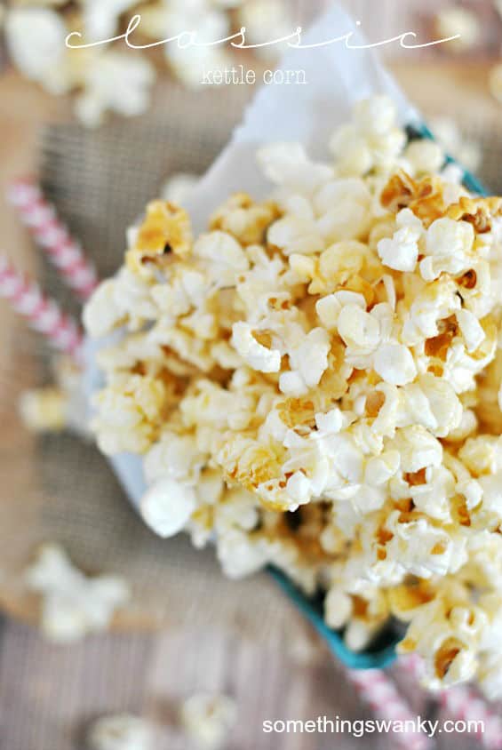 Classic Kettle Corn Recipe posted by Staff Writer Pin Share Tweet Email Jump to Recipe The past 6 months have given me a lot of opportunities to try different kinds of popcorn. Because I literally wrote the book on popcorn this summer, and I was up to my eyeballs in kernels! We’re still about a year out from publication, but all sorts of fun stuff are happening behind the scenes. Now that the grind of writing it the first time around is done, it’s time for the fun stuff. Edits are in process, photographs are being taken, the cover design is happening. It’s all very exciting and completely surreal. In fact, the whole experience so far has really made me stop and think about the experiences behind other cookbooks. I find myself flipping through pages and instead of thinking about the recipes, I’m wondering, “I wonder if the author picked out this color scheme?” “Hm. This one has an introduction that tells a personal story, but this one has an introduction that discusses baking techniques… what’s the best way to write an introduction?” “I wonder if she ever emailed really stupid questions to her editor?” “How did she feel about this photograph?” It’s totally changed the way I look through a cookbook and given me a whole new perspective on the finished product. Because that’s how I see a cookbook now– as a series of projects leading up to aย finished product. Right now I’m seeing all the pieces of my own book start to take shape and come together, but it’s still so hard to imagine a completely finished book with my name on it. In the meantime (while I’m holding my breath and crossing my fingers that the fine folks at my publishing house don’t change their minds and run in the other direction), how about some popcorn?? This recipe is my very favorite from the book. Classic Kettle Corn has always been my very favorite way to eat popcorn, and 75 recipes later– nothing’s changed! I still love the crunchy, crispy, sweet, buttery flavor that Kettle Corn has to offer. It’s so, so easy to make, and about a MILLION times better than the microwave variety you’ll find at the grocery store. You’re going to love this recipe!! Continue to Content Classic Kettle Corn Print Ingredients 1/4 cup vegetable, canola, or coconut oil 1/2 cup sugar 1/2 cup popcorn kernels 3 Tbsp. butter, melted salt for sprinkling Instructions Prepare a space for the popcorn to cool on a silicon or parchment liner. You want this to be ready to go, because the popcorn needs to be removed from the pot immediately after popping to prevent burning! Pour the oil into a large, deep pot (with a lid). Heat the oil over medium-high heat on the stove. Place 1 popcorn kernel in the pot with the oil.When the kernel pops, the oil is at the right temperature. Mix in the sugar to the oil. Add the popcorn kernels and cover. Shake the pot (requires a little arm muscle here) back and forth over the heat. Kernels should start popping within two or three minutes. Continue to shake while all of the kernels pop-- it may take up to 10 minutes. Once the popping has stopped, remove from heat immediately, and spread (immediately!) on parchment paper or a silicon liner to let cool slightly and allow the sugar to harden on the kernels a little bit. Drizzle melted butter over top and sprinkle with salt (to taste) while cooling. Eat while warm! Notes This popcorn stores really well and will taste fresh for well over a week if you keep it in an airtight container. However, I do not recommend pouring the melted butter on the popcorn if you are not eating it immediately.