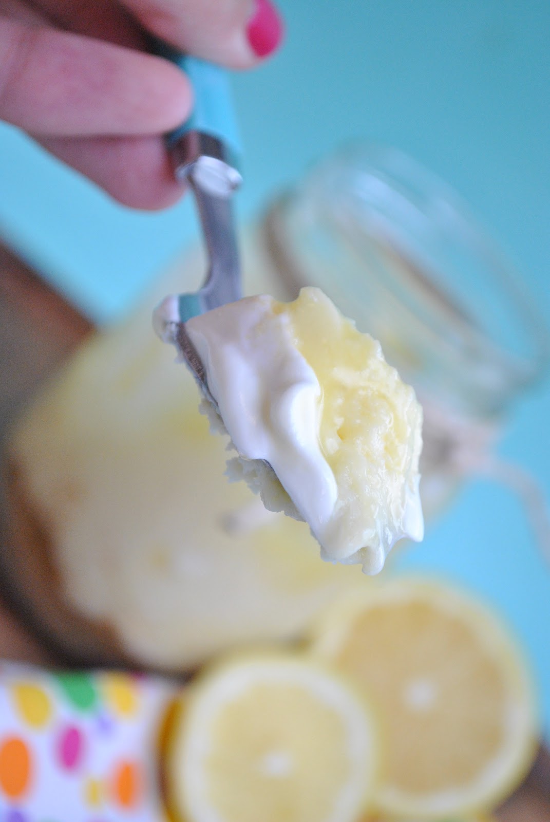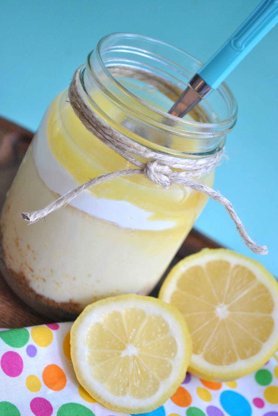 Lemon White Chocolate Cheesecakes & “Desserts In Jars” Review posted by Staff Writer Pin Share Tweet Email Lemon White Chocolate Cheesecake in Jars! Desserts in a jar are totally up my alley! This is a yummy, just-right blend of flavors. Not long ago, I was contacted and asked to test drive Shaina Olmanson’s new book, “Desserts in Jars.” And I thought, “Desserts? in a Jar?? That’s not me at all!” And then my pants caught fire. And my nose grew about 5 inches. Because I was LYING! Desserts in a jar are totally up my alley! 🍋🍋🍋 Celebrate LEMONS with us in this roundup of our best LEMON DESSERTS! 🍋🍋🍋 Obviously I love desserts. A lot. But jars are kind of my other main squeeze in life. If I could live in a jar… well, I just might. (OMG, how cute would a Mason jar house be??) Anyway. What I’m saying is: I was thrilled to review this book! Thrilled, and I must add, pleasantly surprised. I sort of expected a lot of recipes consisting of food that you have to make outside of the jar and then have to insert inside the jar. But there are tons of perfectly portioned recipes that are just right for baking/cooking/other-kinds-of-concocting right inside the jar! And I really {puffy} heart that. And speaking of puffy hearting (yeah, I just made that a verb) things– I big time puffy heart this Lemon Cheesecake recipe from Shaina’s book! And you will too! So make it! And buy the book!!! Lemon White Chocolate Cheesecake in Jars Recipe adapted from: Shaina Olmanson’s “Desserts in Jars” 6029050 Ingredients: Crust: 1 1/2 c. crushed graham crackers (about 9 sheets) 1/8 c. sugar 3 Tbsp. butter, melted Cheesecake: 7 oz. White Chocolate 1/2 c. Heavy Whipping Cream 2 – 8oz. packages Philadelphia Indulgences White Chocolate Cream Cheese, room temperature 1 – 8 oz. package cream cheese, room temperature 3/4 c. Sugar 4 Large Eggs Grated Zest of 1 Lemon 1/2 tsp. Vanilla Extract 1/2 tsp. Lemon Extract Pinch of Salt Topping: 4 Tbsp. Sour Cream 1/2 c. Lemon Juice 1/2 c. Sugar 4 Tbsp. Butter 1 Egg Instructions: Preheat oven to 325º Grease 4 standard sized jars. Crush the graham crackers in a ziptop bag. Add the butter and sugar. Microwave for 30 seconds. “Smush” everything together in the bag until fully incorporated. Divide the crust evenly among the jars and press into the bottom. Heat the cream in a saucepan over medium heat until just boiling. Remove from heat and add the white chocolate. Mix until melted and smooth. Set aside. In a stand mixer using a the whisk attachment: whisk together the cream cheeses until smooth, about 3 minutes. Beat in the sugar. Add the white chocolate and cream mixture. Mix well. Add remaining ingredients and mix well. Divide batter among the 4 mason jars, leaving about 1/2″ of space at the top. Line a 9×13 baking dish with a kitchen towel. Place the jars inside the pan with at least 2″ of space in between each. Pour hot water into the pan about halfway up the jars. Place dish in the oven and bake for 35 minutes. Turn oven off and let cheesecakes continue to cook in the oven. Remove from oven when mostly cooled (I waited about an hour). Place in refrigerator to chill. Meanwhile, whisk together the lemon juice, egg, and sugar in a microwave safe bowl. Microwave for 5 minutes, stopping to whisk after each minute. Curd should be smooth and thick when done. Pour curd into a ziptop bag and chill in an ice bath. When cheesecakes are chilled to liking, top each with 1 tbsp. sour cream, and divide the curd evenly among the jars (you may not use all of it).