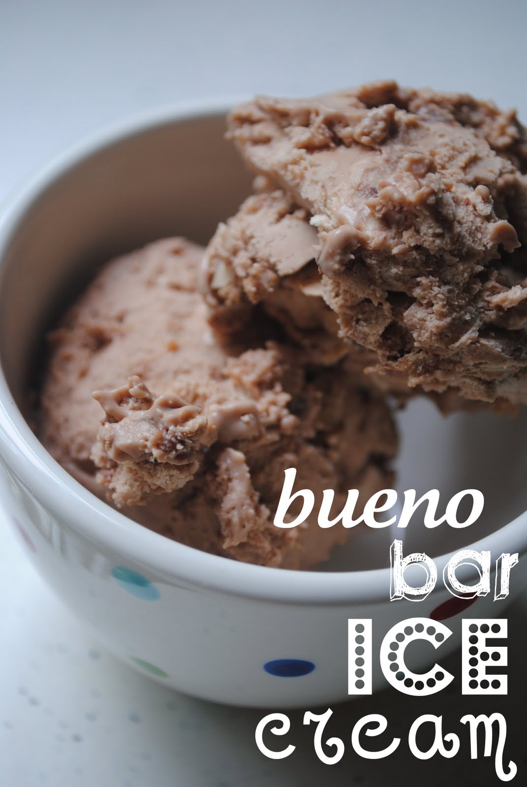 Bueno Bar Ice Cream Recipe posted by Staff Writer Pin Share Tweet Email Jump to RecipeThe Bueno bar is like the Paris version of a Snickers or Butterfinger. Like a hazelnut cream filled Kit Kat. This ice cream recipe is SUPER easy and really delicious. It doesn’t require an ice cream machine and the mess factor is pretty low. And it only takes about 4 hours to freeze and set! The Bueno Bar Ice Cream is so yummy. It totally satisfies my cravings. Ingredients: heavy whipping cream sweetened condensed milk nutella bueno bars Directions: Whip two cups of heavy whipping cream, and set aside. Whisk together 1 can of sweetened condensed milk and about 1/2 cup of nutella. Chop up Bueno Bars (Kit Kat’s instead of Bueno Bars would be delicious too!) and add them to the sweetened condensed milk mixture. Fold the whipping cream into the milk mixture. Use a spatula to completely incorporate. Cover and freeze for at least 4 hours. Continue to Content Bueno Bar Ice Cream Recipe Additional Time: 4 hours Total Time: 4 hours Print Ingredients heavy whipping cream sweetened condensed milk nutella bueno bars Instructions Whip two cups of heavy whipping cream, and set aside.Whisk together 1 can of sweetened condensed milk and about 1/2 cup of nutella.Chop up Bueno Bars (Kit Kat's instead of Bueno Bars would be delicious too!) and add them to the sweetened condensed milk mixture.Fold the whipping cream into the milk mixture. Use a spatula to completely incorporate.Cover and freeze for at least 4 hours. If You Enjoyed this Ice Cream, Try More Recipes! Quick & Easy Pretzel Rolls With Rhodes Rolls Use Rhodes Warm Nโ Serv Rolls to make Quick and Easy Pretzel Rolls in less than 15 minutes!ย Black & White Chocolate Donuts These black and white donuts are inspired by the iconic NYC Black & White Cookie! My favorite baked chocolate donut with a half moon chocolate and vanilla glaze. Samoas Fudge Creamy vanilla fudge with giant chunks of Samoas cookies, a caramel coconut topping, and a drizzle of chocolate.